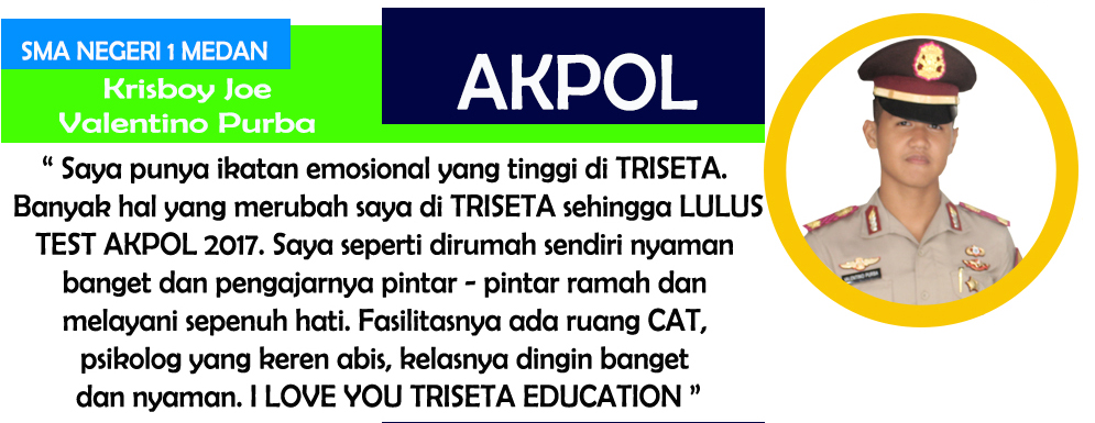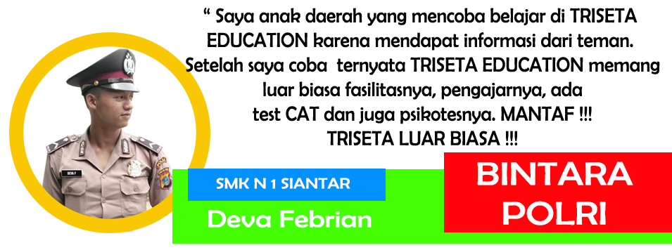 Triseta Education membekali siswanya dengan persiapan AKADEMIK, JASMANI, PSIKOLOGI dan KESEHATAN dengan tutor & Psikolog professional berpendidikan S1 dan S2